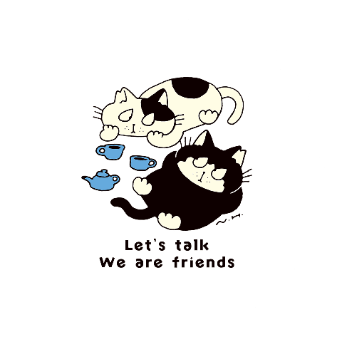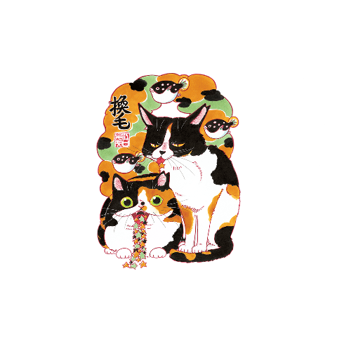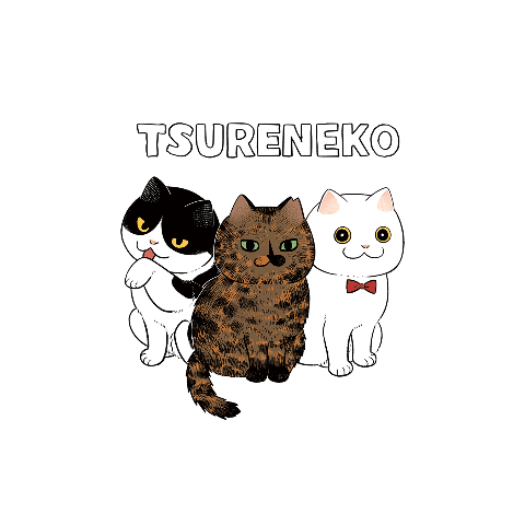 ツレ猫マルルとハチに出てくるサビ姐さんをセンターに置いて描かせていただきました。作中に出てくる保護猫カフェのTシャツがこのような機会に実現して、作者もハッピーです。