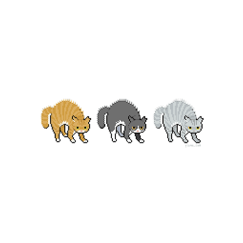 支援活動によって里親さんに迎えられた猫の、心を開く前のやんのかステップをドット絵にしました。