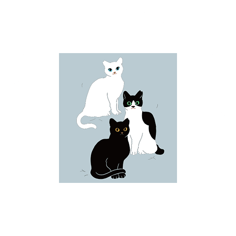 元地域猫で、私に猫の世界を広げてくれた白黒の相棒に想いをはせながら、どんなときでも凛とした姿をみせてくれる猫たちをイメージして描きました。