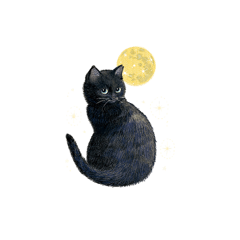 月明かりで浮かび上がる凛とした黒猫さんを描きました。