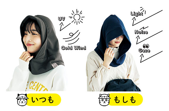 気になる視線や光をシャットアウト!避難所で活躍するフード付きスヌードが新登場!