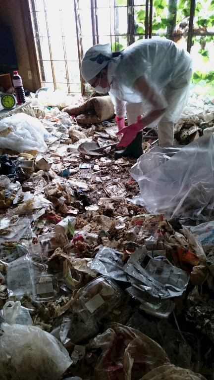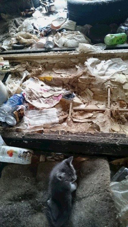 8月、始めて訪問した男性宅はものすごい臭気と堆積した糞尿、ゴミ、猫たちの姿でした。数は現在でも正確にはわかりません。